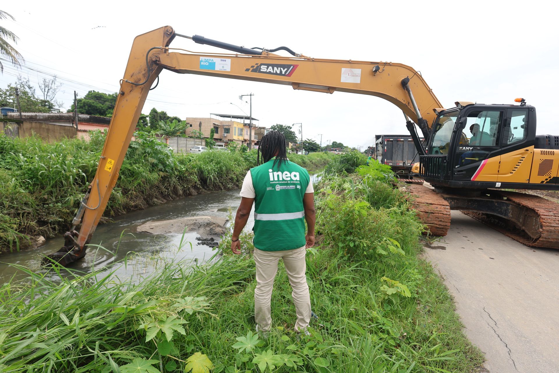 No total, quatro escavadeiras e oito caminhões operam no Canal São Bento, Canal Faria, Canal Marilândia e Valão da 7 para garantir a liberação de vias.