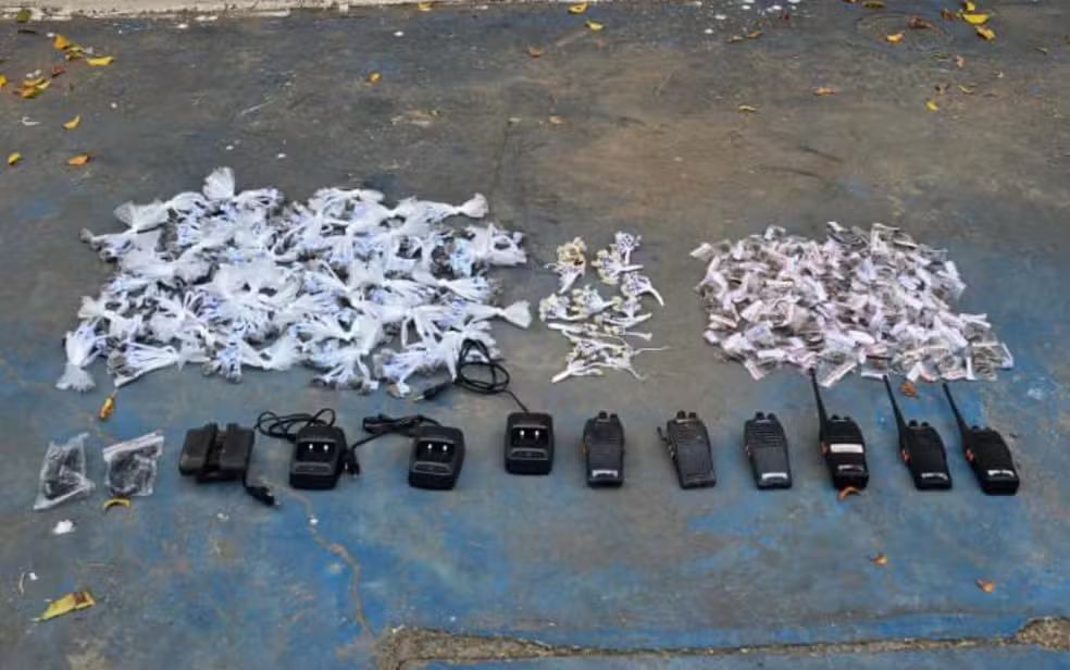 Além das drogas, também foram apreendidos seis rádios transmissores, três bases de rádio, dois fones de ouvido e um porta-carregador de pistola, equipamentos utilizados para comunicação entre suspeitos.