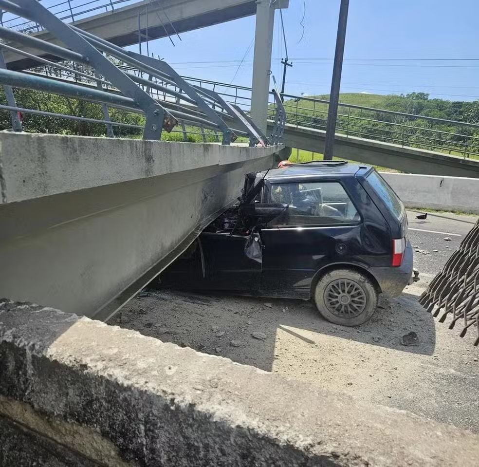 A passarela desabou no carro de passeio, que atravessava a via no sentido Guapimirim. O condutor do veículo não resistiu aos ferimentos e morreu no local. Segundo a Polícia Rodoviária Federal (PRF), o acidente aconteceu por volta das 9h30.