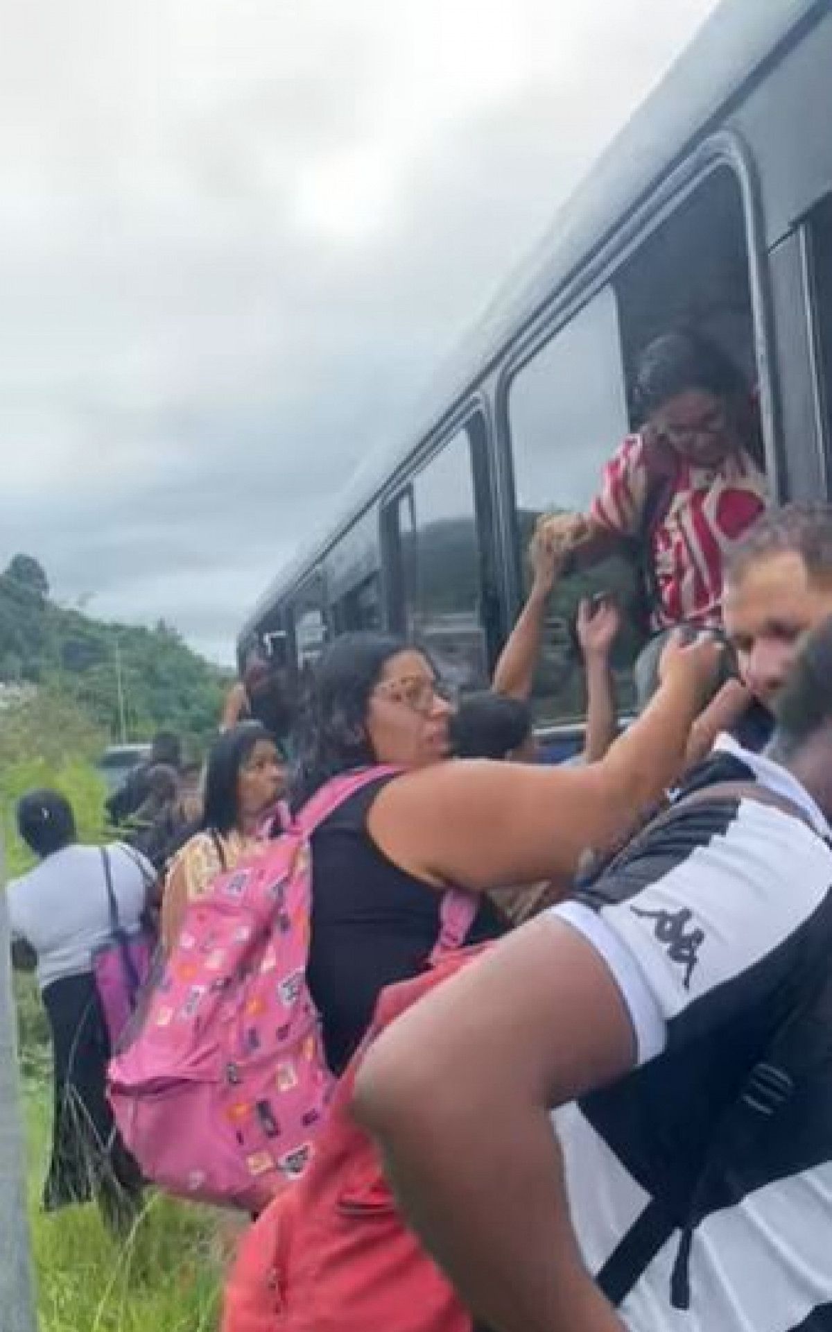 Em imagens que circulam nas redes sociais é possível ver os passageiros sendo retirados pela janela.