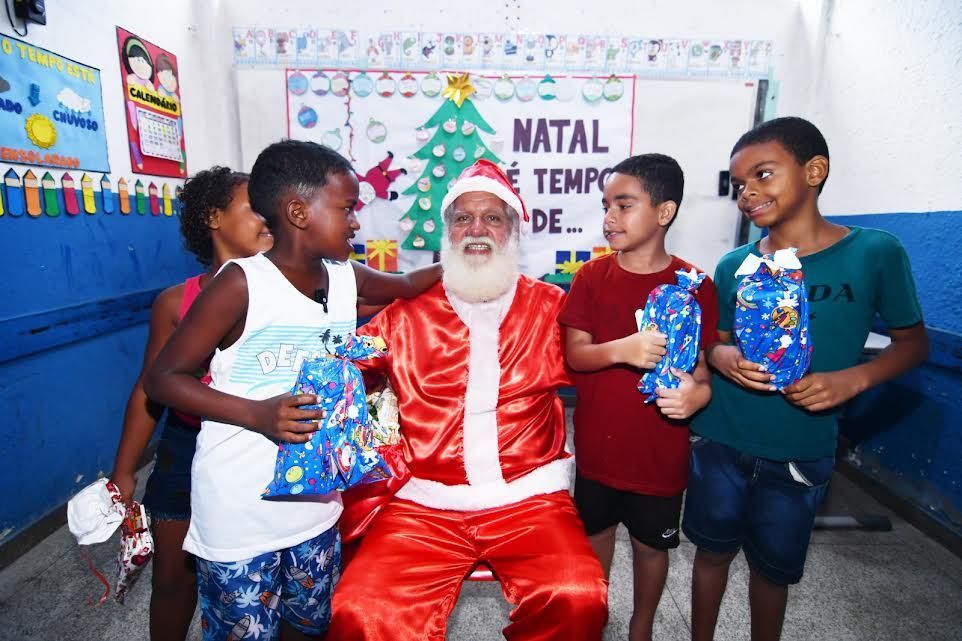 Papai Noel visita alunos de escola municipal de Nova Iguaçu e leva magia natalina a cerca de 400 crianças