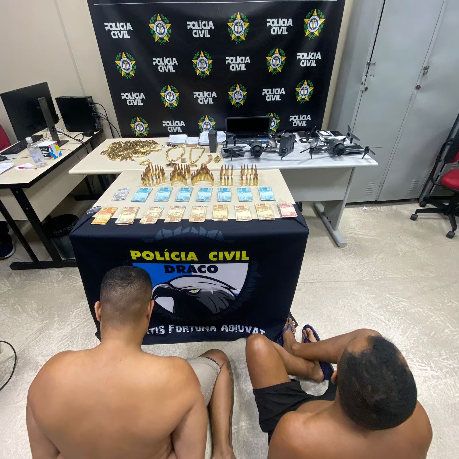 Durante a operação, os agentes também identificaram um imóvel utilizado como base da milícia. No local, foram apreendidas munições, drones usados para monitoramento territorial, telefones celulares, anotações relacionadas à organização criminosa e dinheiro em espécie.