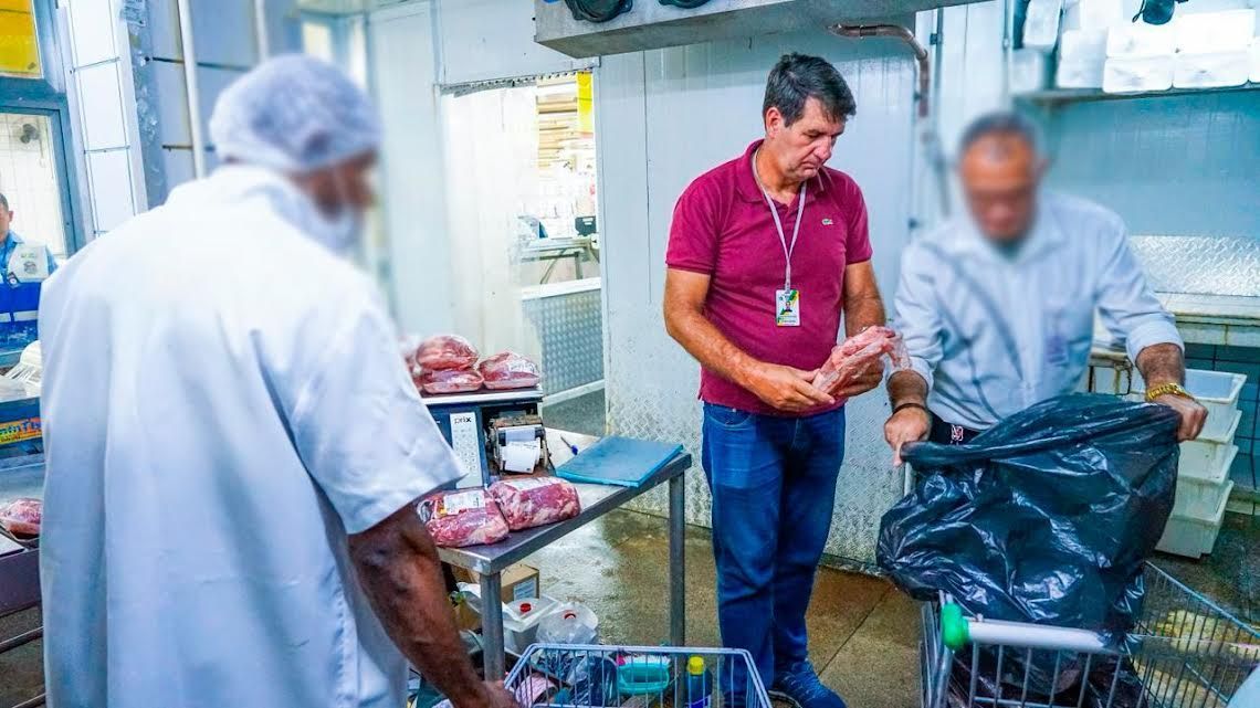 Fiscalização apreendeu e descartou mais de 50 kg de carne imprópria, identificou falhas graves de higiene e outras irregularidades sanitárias no estabelecimento