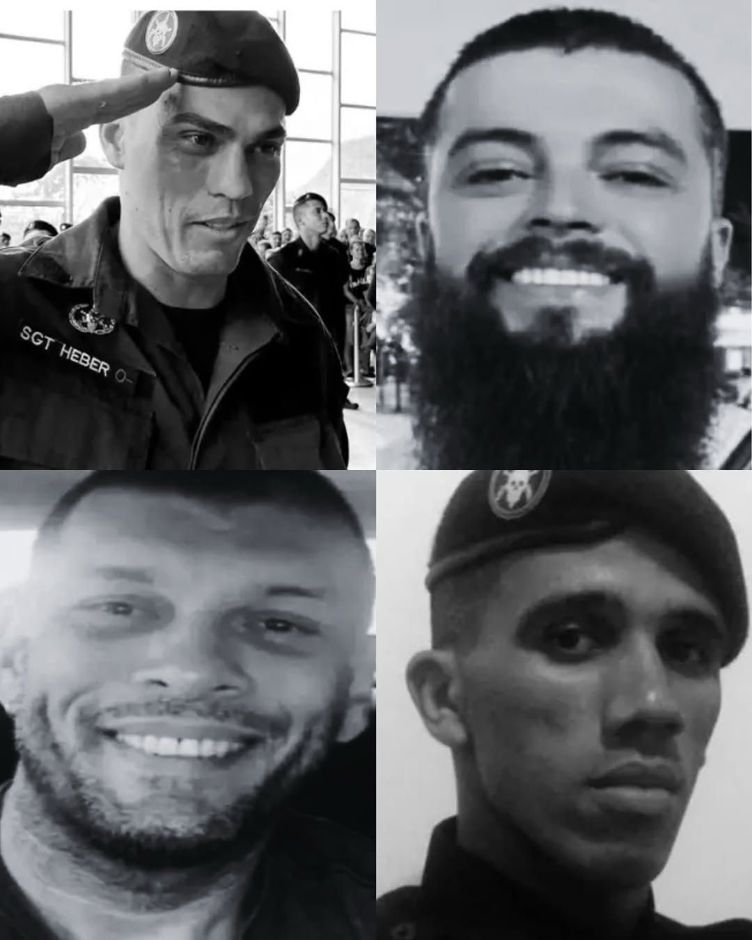 Quatro policiais — 2 civis e 2 militares — morreram nesta terça-feira (28) durante a megaoperação das forças de segurança nos complexos do Alemão e da Penha, na Zona Norte do Rio.