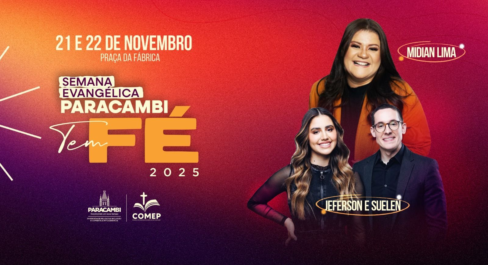 A Prefeitura de Paracambi, por meio da Secretaria Municipal de Diversidade Religiosa, Inclusão e Combate ao Preconceito, realizará uma das celebrações mais aguardadas do ano: a Semana Evangélica 2025, que acontecerá de 17 a 22 de novembro, na Praça da Fábrica. A organização do evento conta com a parceria da Secretaria Municipal de Cultura e do Conselho de Ministros Evangélicos de Paracambi (Comep).
